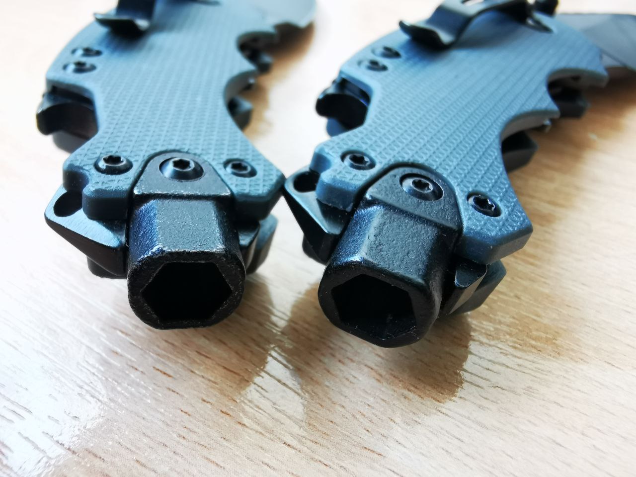 Рукоять модели выполнена из термопластика GRN — живучего материала, который хорошо противостоит ударам и открытому огню. К его минусам можно отнести слабую переносимость холодов — при температуре ниже 17 градусов ударная прочность может снизиться, однако, если говорить об остальных характеристиках данного материала, он сполна оправдывает свою стоимость.